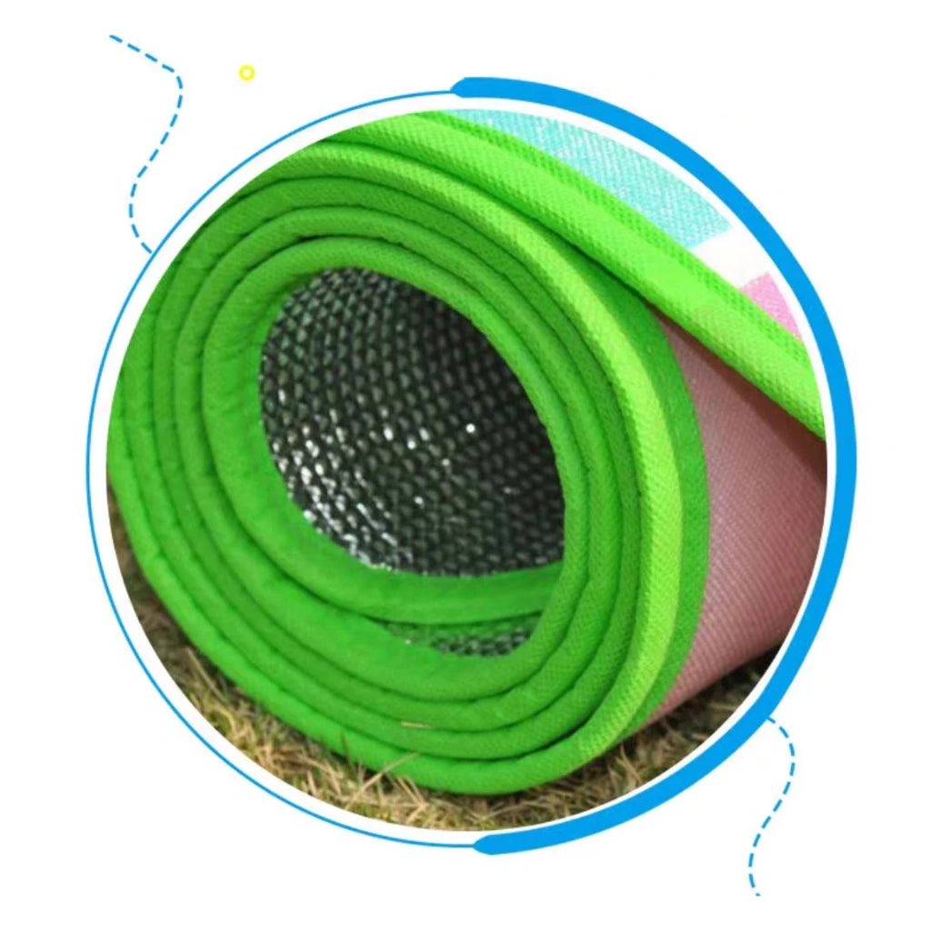 O verso do tapete não possui estampa e possui uma manta térmica na cor prata.